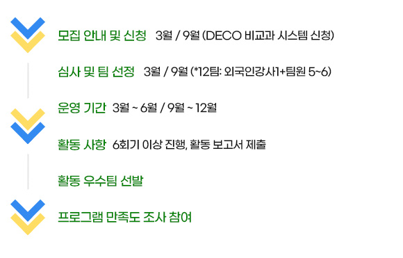 - 학생: 활동 인증서 발급, 우수팀 시상비 지급, 활동비 지원, 비교과 포인트, 학생경력개발등재