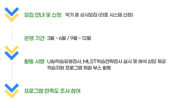 - 활동혜택학습심리검사 (U&I학습유형검사, MLST학습전략검사) 실시 및 결과해석 제공, 학교생활 정보 제공